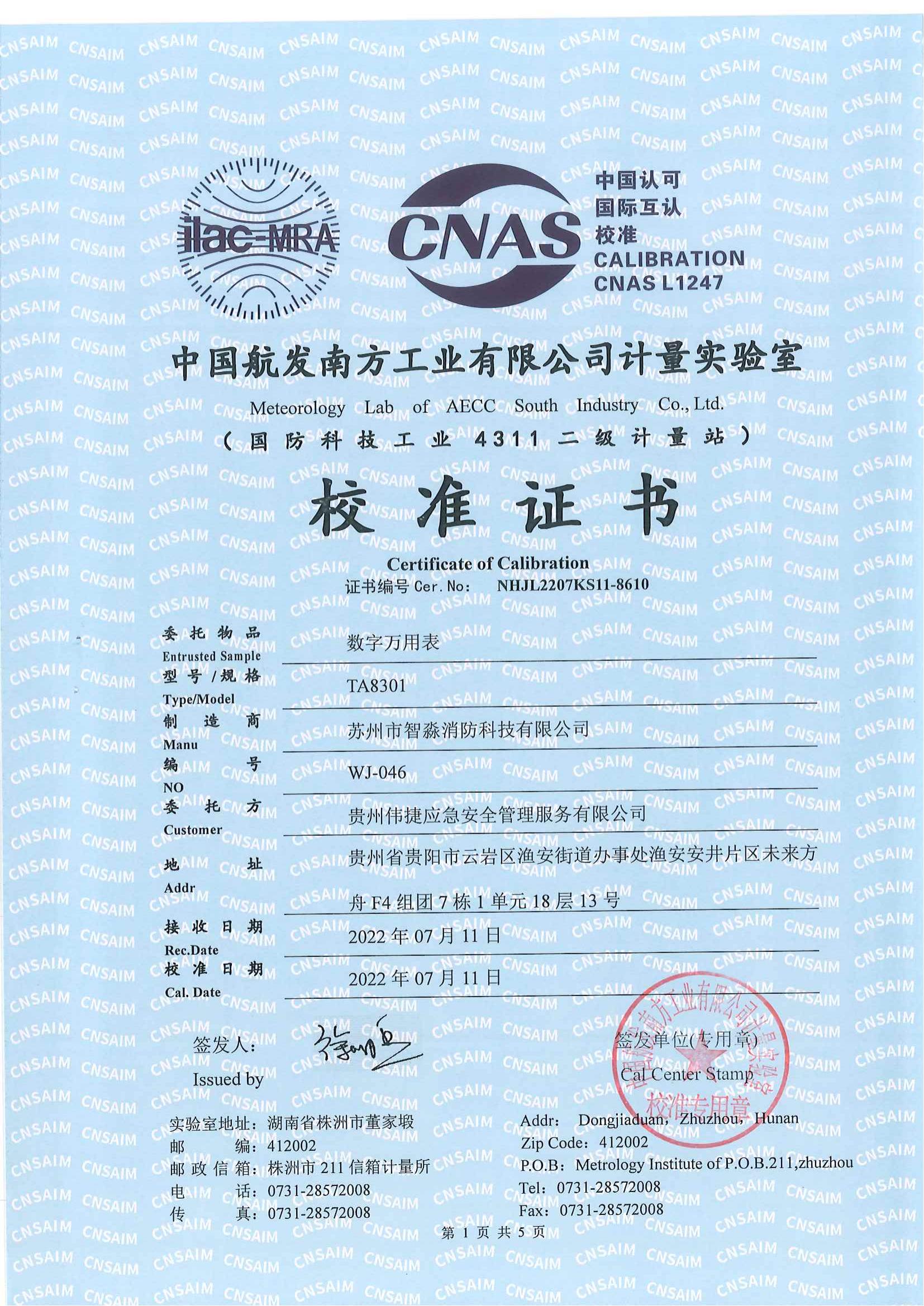 數字萬用表校準證書報告
