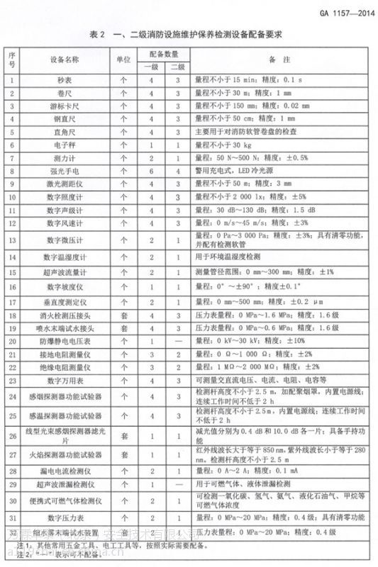 一二級消防設(shè)施維護保養(yǎng)威海檢測設(shè)備用于建筑消防設(shè)施的維護、保養(yǎng)和檢測,其設(shè)備配備的種類和數(shù)量至少應(yīng)滿足表 2 的要求